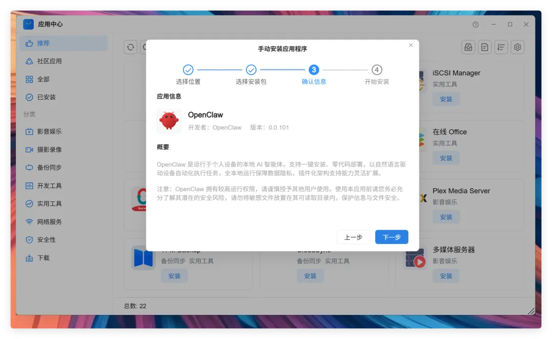 铁威马 TOS 7.0 系统,最近上线了 Openclaw 应用。