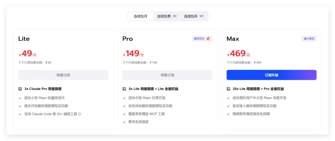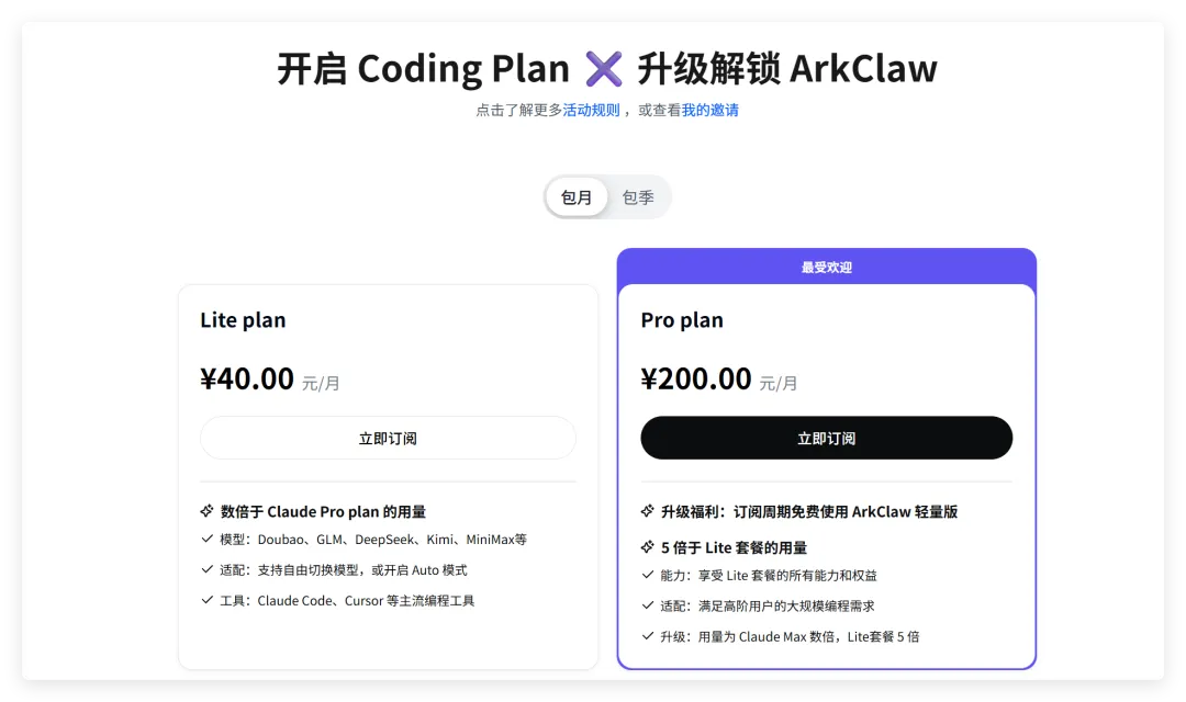 在将 OpenClaw 接入大模型之前,我们必须先买相关的套餐。