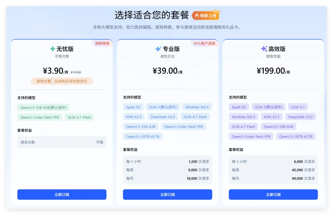 5️⃣ 讯飞星辰。3.9 的千万别买,39 起步。需要自定义端点加入。