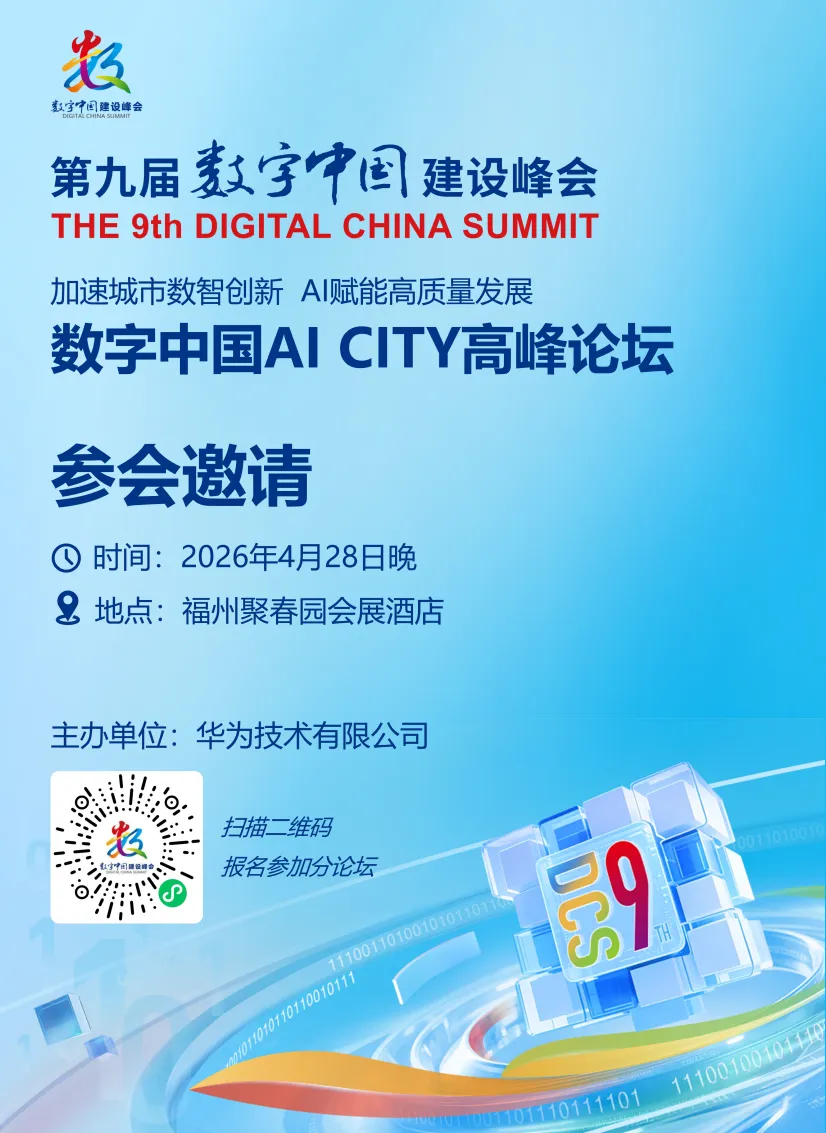 作为峰会官方核心活动之一,由华为公司主办的“数字中国AI CITY高峰论坛”将于4月28日晚在福州聚春园会展酒店举行。本次论坛以“加速城市数智创新,AI赋能高质量发展”为主题,聚焦人工智能与数据要素如何赋能城市高质量发展。