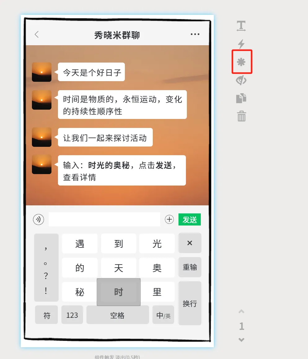3、逐页调整“触发区域”的位置,及“输入框”里的文案即可;