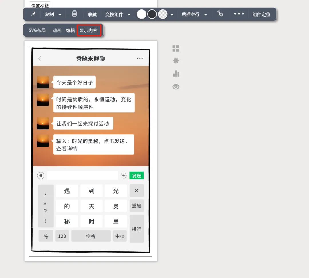 ②正文调整:需拉出展开布局,先选中SVG布局框,点击“显示内容”即可。