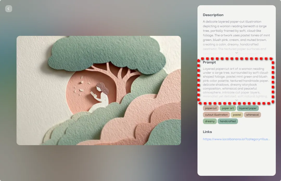 之后 Ribbi 就会在背后分析这些图片反推出提示词,帮我们轻松得到同款图片。同时还会提取它们的视觉风格,在线训练审美偏好。