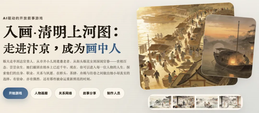 对于香港大学的陈钰琪教授而言,这幅名作更是一个切入点,引导学生走进许多历史叙事中常被忽略的主题:普通人的生活。因此,她开发了《入画:清明上河图》,一款由AI驱动的历史模拟游戏,让玩家化身北宋末年的一位“寻常人”,走进画卷之中。