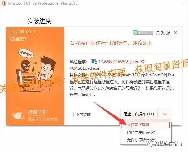 10、如果有杀毒软件报毒,请选择【允许本次操作】