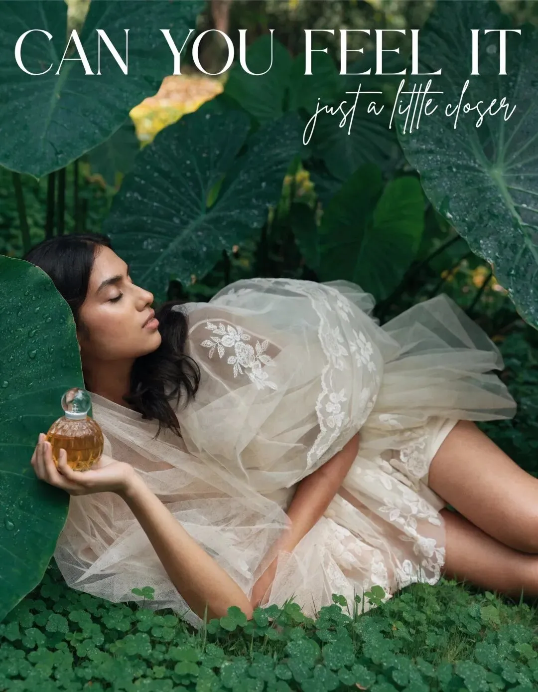 最关键的是,它没有把“绿色”写成一个简单色值,而是写成了一种嗅觉和氛围。「A perfume that smells like green」 这句本身就很厉害。它先给你一个感官判断,再往下落成视觉方案。