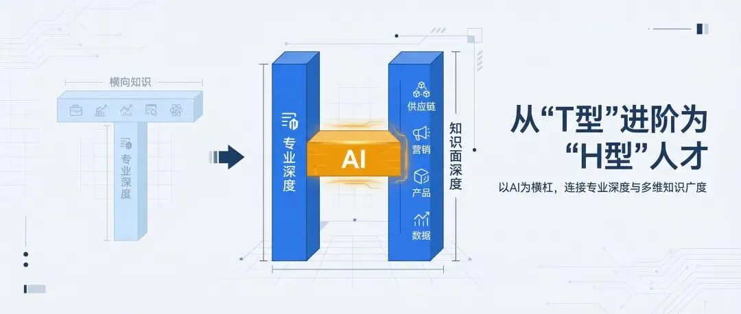 https://www.coze.cn/store/agent/7627146116228448290?bot_id=true以前说"T型人才",一专多能,纵向有深度,横向有广度,这个概念大家听出老茧了。AI正在催生另一种结构,就叫它"H型人才",H的左边那一竖,是你的专业纵深,右边那一竖,是你在相关领域的知识深度:供应链、营销、数据、产品等等跨界经验。AI把左右两根柱子连起来,它通过你沉淀的知识库,配合你的提问方式,把两边的能力成倍放大,但关键不在AI,未来大家用的模型会都差不多,没有算力智力上的巨大悬殊,关键在左右那两根柱子:你的经验够不够多样,思维够不够深,沉淀够不够厚。你喂给AI的东西越丰满,它给你的结果越有层次,我如果招团队伙伴,不是去找"会用AI的人",是找那些跨界、跨行业、有多维经验的人,AI可以帮他补齐不了解的细节,但独一份的全局视角和批判性思维,AI补不了。