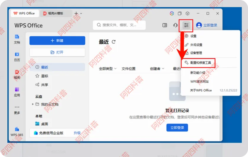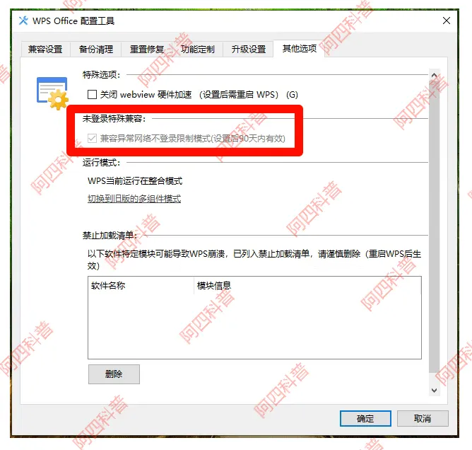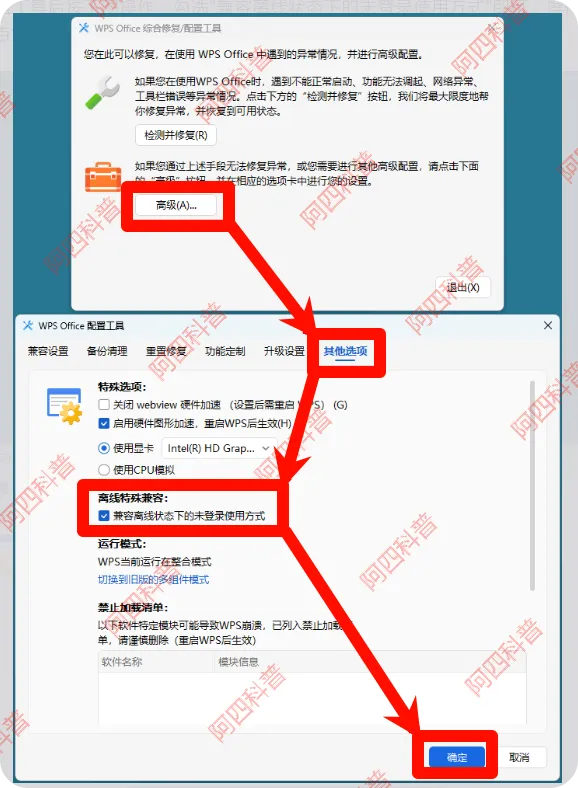 第一个方法,配置离线兼容模式。先打开WPS配置工具,要么在开始菜单里找WPS文件夹点开,要么在WPS主界面点设置,选择配置和修复工具。打开之后点高级,找到兼容设置,勾选“兼容离线状态下的未登录使用方式”,点确定保存,重启WPS就能用了。不过2024版这个设置有90天有效期,到期重新勾一下就行。