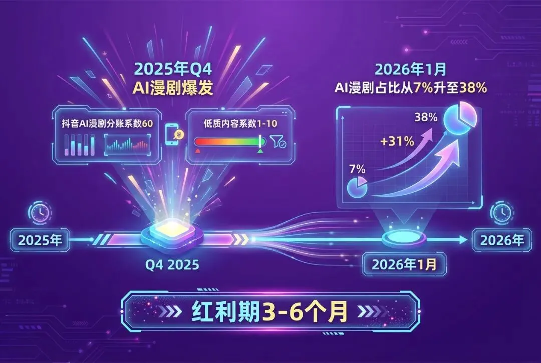 不是悲观,是事实。有技术负责人说了句大实话:每一版模型领先的窗口期,只有两个月左右。字节的Seedance 2.0刚发布,效果让传统从业者睡不着觉。但两个月后,可能就有新版本追平了。技术壁垒?今天是你的,明天就是大家的。但更深层的原因,是四个东西同时在收紧: 技术迭代太快 — AI视频生成已经进入"月更"甚至"周更",先发优势转瞬即逝。 平台政策收紧 — 2026年4月起,审核全面趋严,大量低质内容被清退,靠套利赚钱的窗口关了。 供给爆炸 — 2025年新增漫剧相关企业超8万家,2026年1月全网上线AI漫剧超1.4万部。但多数团队扎堆"末世"、"战神"题材,画风撞脸,用户审美疲劳。 用户变刁了 — 早期用户为新奇接受低质量内容,但现在开始挑剔画面一致性、剧情逻辑。当用户开始懂行,劣币驱逐良币的窗口就彻底关了。