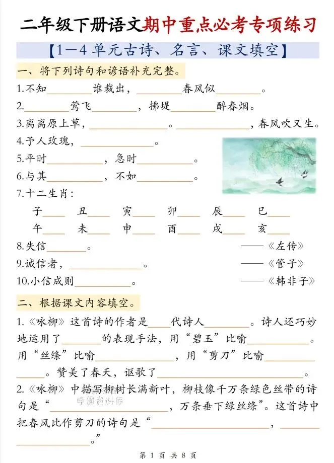 今天给大家整理了二年级下册语文期中重点必考专项练习,转发给朋友或班级群,受益更多人,帮助孩子学习!