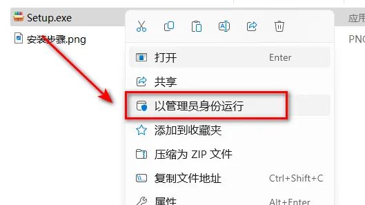 2.选中Setup,鼠标右键选择“以管理员身份运行”