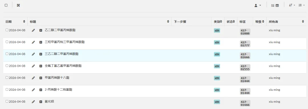 之前入库的化合物中,全氟丁基乙基甲基丙烯酸酯(CAS 1799-84-4)刚才已补全。其他试剂今天入库的如果有类似问题我会一并检查。