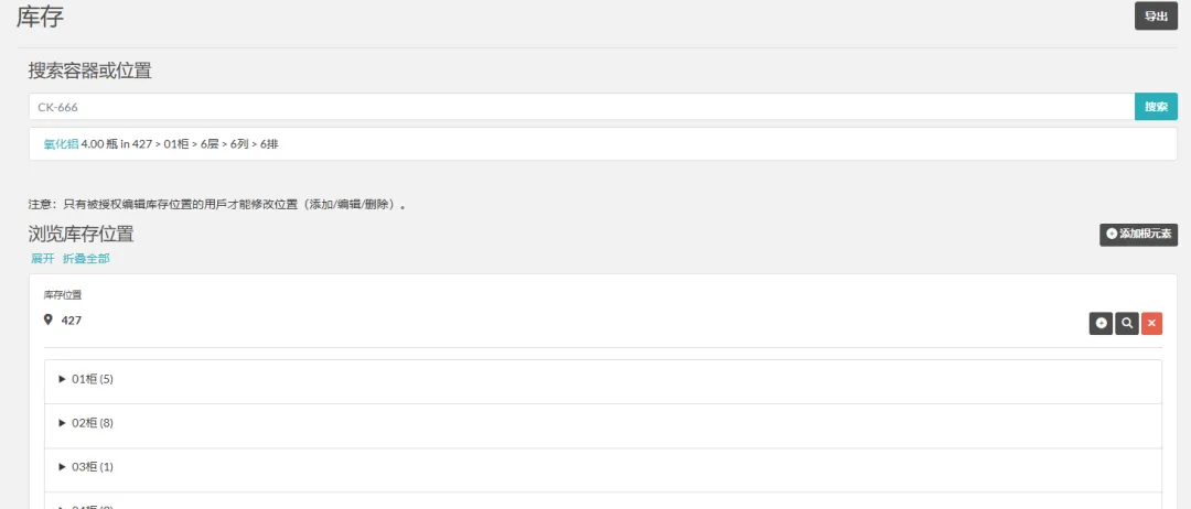 427 > 01柜 > 2层 > 4列 > 1排 > 6层 > 6列 > 6排 | 427 > 01柜 > 6层 > 6列 > 6排 |