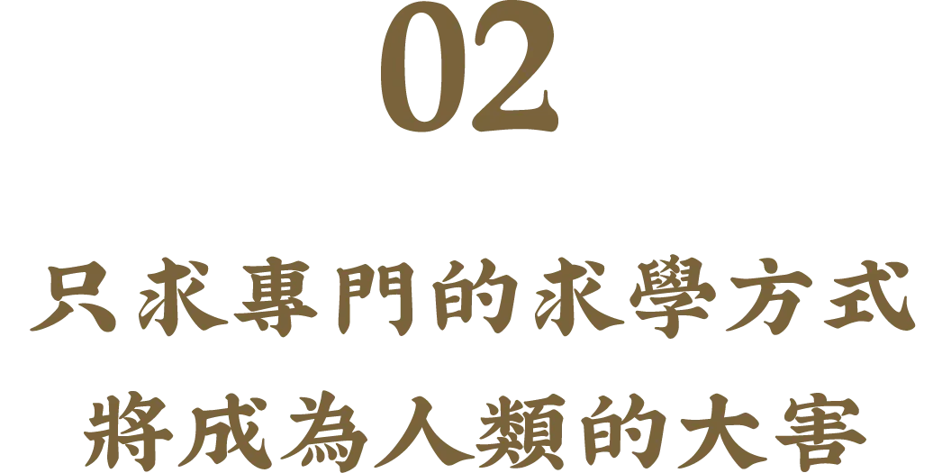 現在醫學院的教育方式很不錯,最初一兩年,對於醫學上每一科每一部門都要學習;最後才專門深研一科,或內科,或外科,或牙科,或耳鼻喉科等,分科越來越細越專門。但社會上一般教育很糟,越專門則越不通。現代的“博士”,實際上並不博,只是專家的代號。現在所謂的專家,是獨門深入到牛角尖中的學問,除了他所專的以外,對於別的知識就完全茫然。這種只求專門的求學方式,在目前這個時代,也許覺得是好的;但可以預見的是,五十年後將成為人類的大害,到時可能後悔,才要改變目前的教育方式。