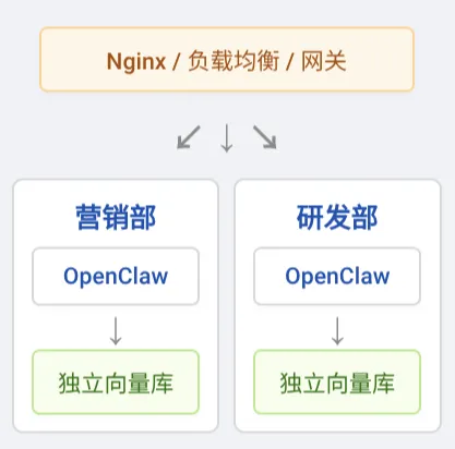 很多团队最先落地的做法,就是按部门/项目各跑一套 OpenClaw。
