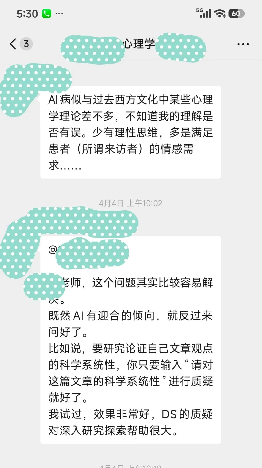 Z专家说:“根据我个人的思考、研究和总结,AI不仅容易导致有些人成为妄想症,而且还可能患其它症。见下文(转发了该专家公众号上的一篇关于“AI症”的文章)。”