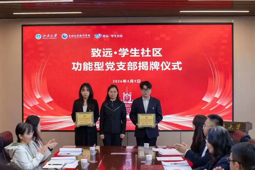 揭牌仪式上,自动化与软件学院党委副书记、院长朱广宇首先宣读了《关于同意成立自动化与软件学院致远•学生社区功能型党支部的批复》、党支部书记及支部委员会委员的任命文件,随后与自动化与软件学院党委书记王莉共同为致远•学生社区功能型党支部揭牌。