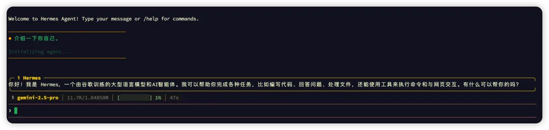 source ~/.bashrc # or: source ~/.zshrchermes # Start chatting!如图所示: