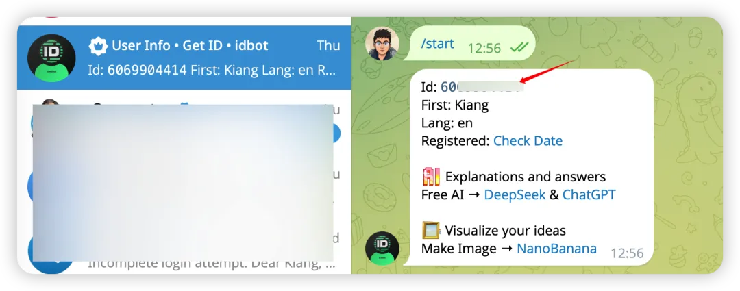 输入 /start 获取 id