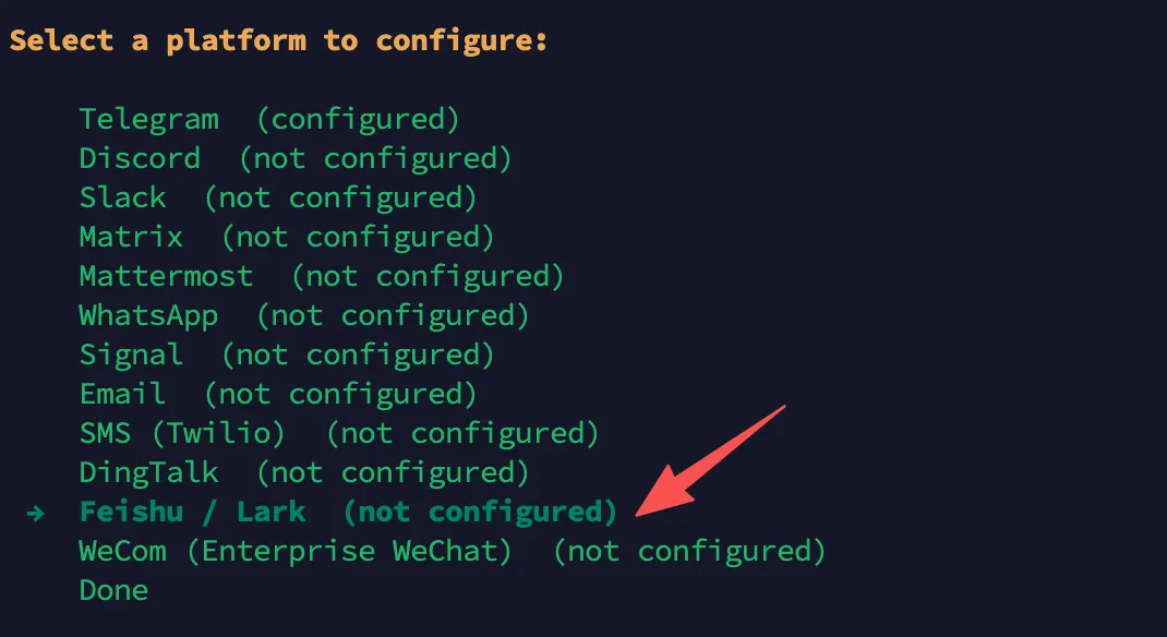 1. 选择 Feishu / Lark