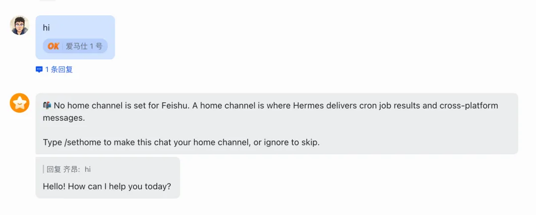 ok!至此飞书也可以对话了