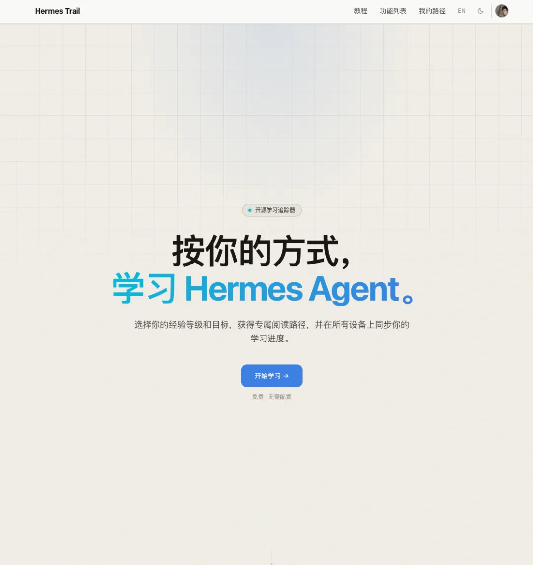 • OpenClaw 的确很折腾人,需要花费时间,也就是所谓的“养龙虾”,它就好像一个宠物,你得呵护它,你得教他,教了它,它真的懂,但是不长教训,所以你得有耐心! • Hermes 是个孩子,它会吸取教训,会和你一起成长(The agent that grows with you),想一想一个你亲手喂养长大的孩子,会不会感到一丝欣慰!(宠物也会长大,也会陪伴,嗯,没毛病) • 人生苦短,我用 Python! (嗯, hermes agent 是基于 Python 开源的) • Hermes 的官方文档我觉得比 OpenClaw 文档要好多了,特别是还贴心的给了一条学习路径,我根据这条学习路径做了一个学习网站(hermes.kiang.website),免费,感兴趣的可以看看!