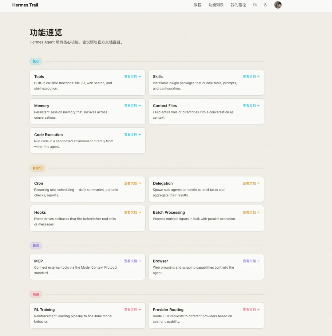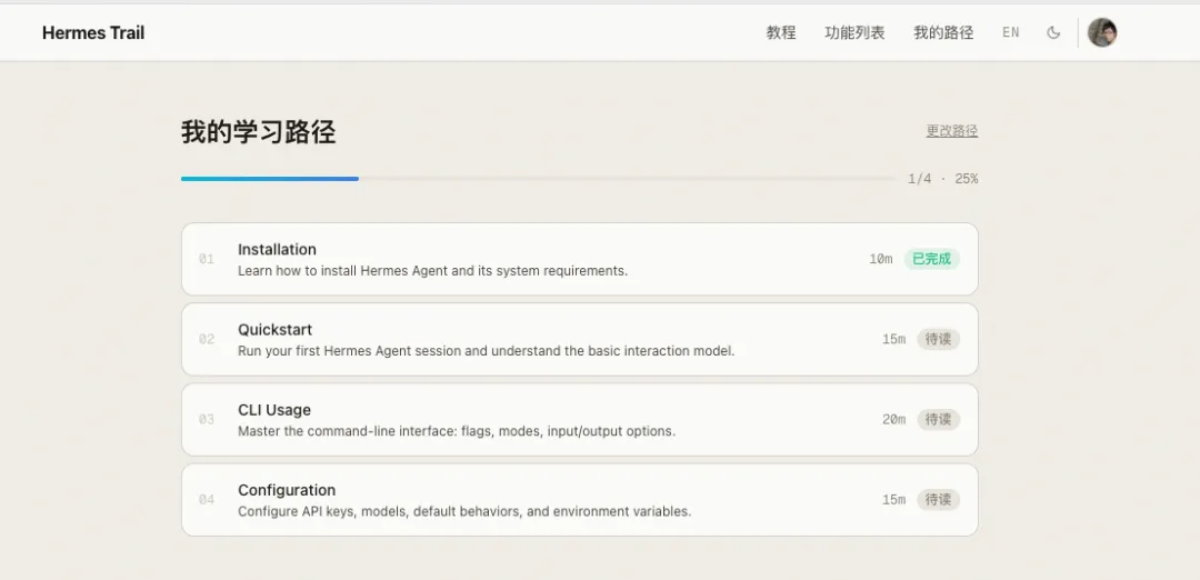 就像我最开始说的那样,hermes 官方给了一条很清晰的路径,让你不至于在纷繁复杂的概念和文档中迷失!