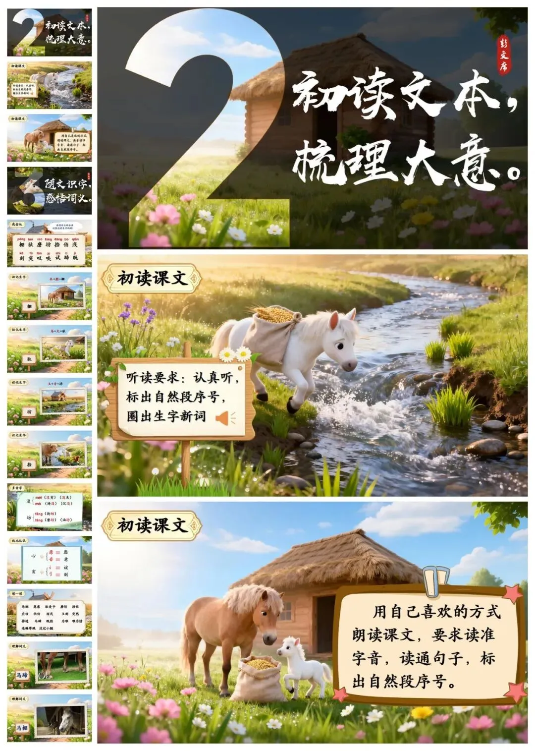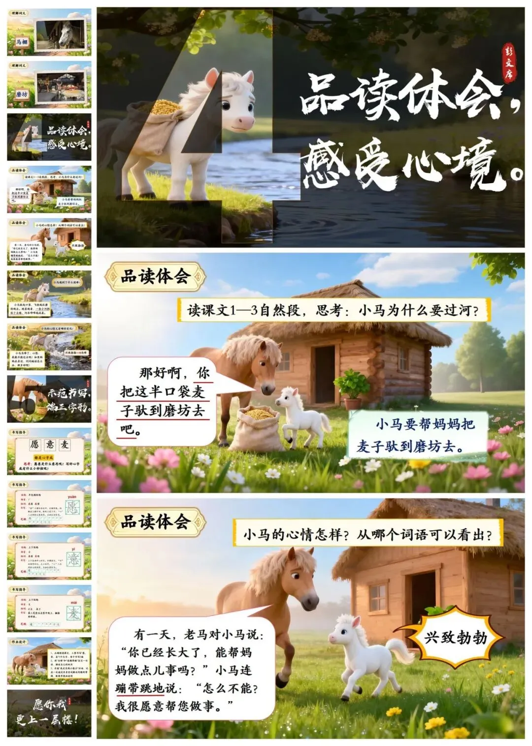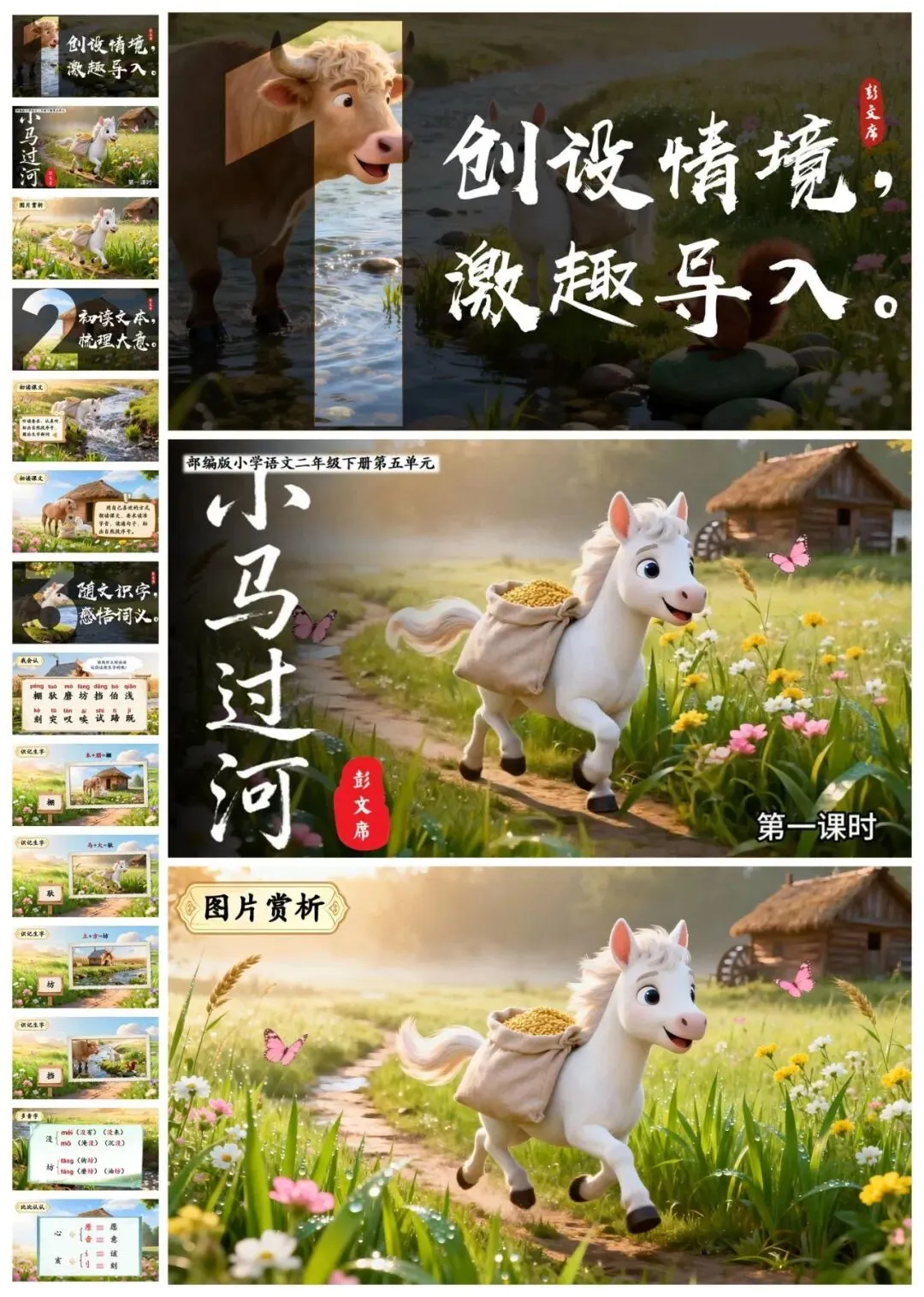 【AI赋能】二级下册语文《小马过河》公开课电子资料包:Ai引导视频+PPT课件+教学设计+逐字稿+分层作业