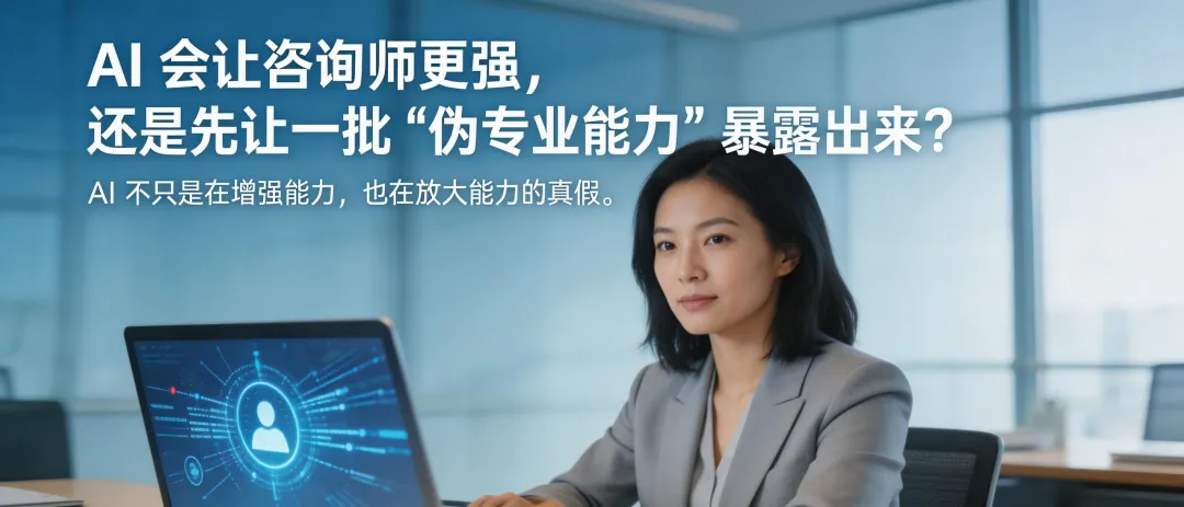 AI 的进入,不只是增强能力,也会重新检验能力。它不仅会帮助一部分咨询师更快成长,也会让另一部分原本依赖模糊光环、经验幻觉和技术表演维持的“伪专业能力”更快暴露。