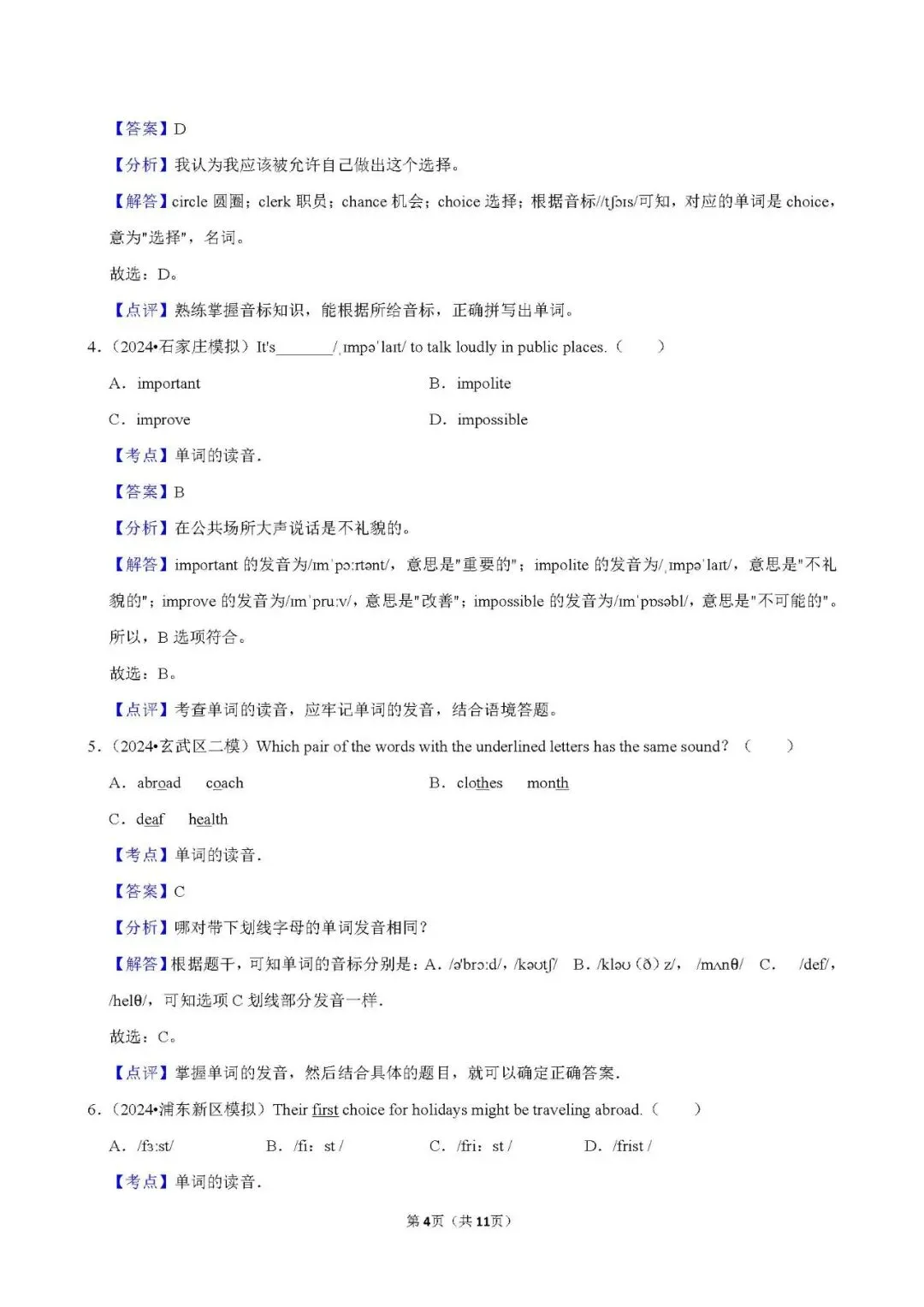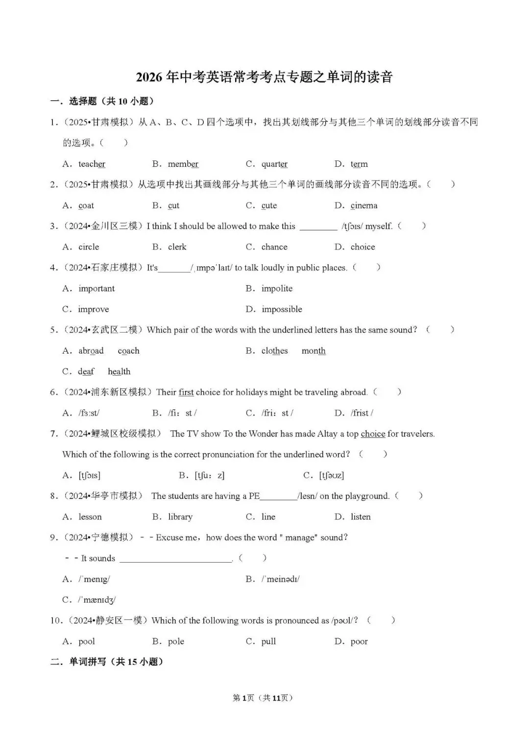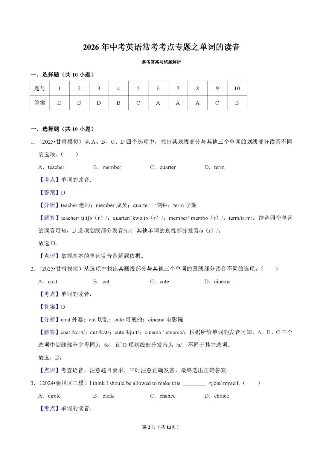 中考 | 初中英语 常考考点《单词的读音》含答案