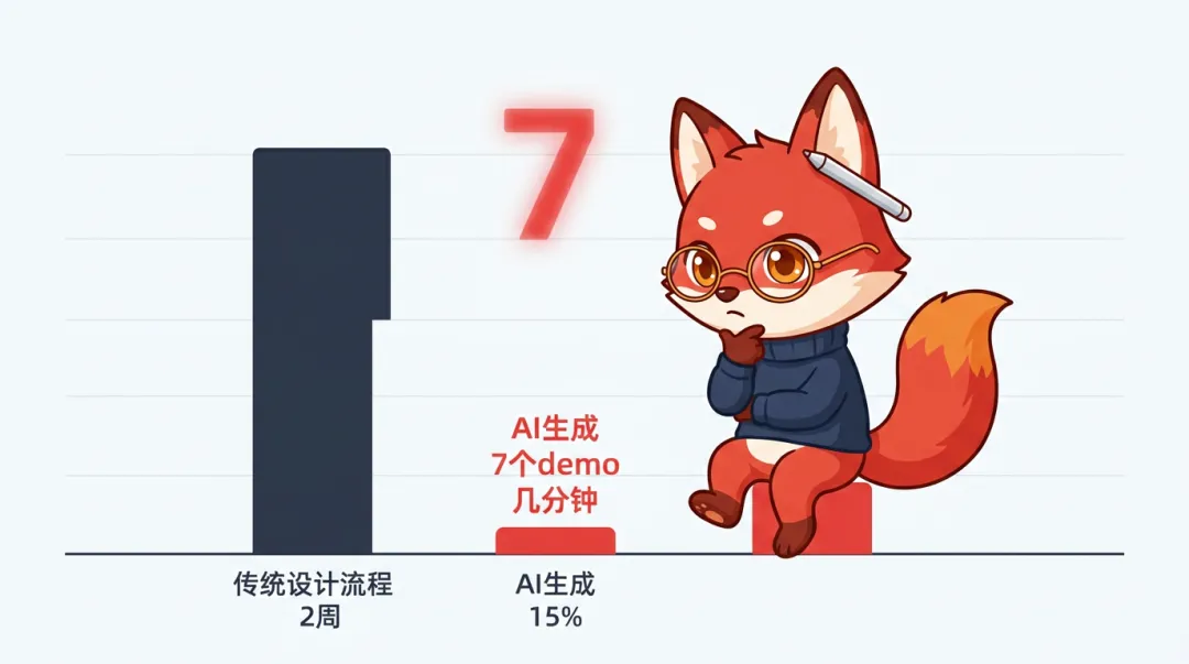 这话从一个AI公司的设计掌门人嘴里说出来,杀伤力可想而知。她提到的一个事实更扎心,现在开发团队不用设计师,靠AI就能一口气跑出7个产品demo。你想想看,从前设计师花两周做一套原型,现在AI几分钟搞定,还不止一个方案。