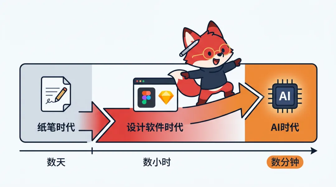 从纸笔到设计软件,从设计软件到AI,逻辑是一样的。只不过AI这一波对设计师工作时长的压缩是指数级的,不是从两天缩短到两小时,而是从两周缩短到两分钟。这个跨度太大了,大到让人产生一种错觉,好像整个设计思维体系都被否定了。