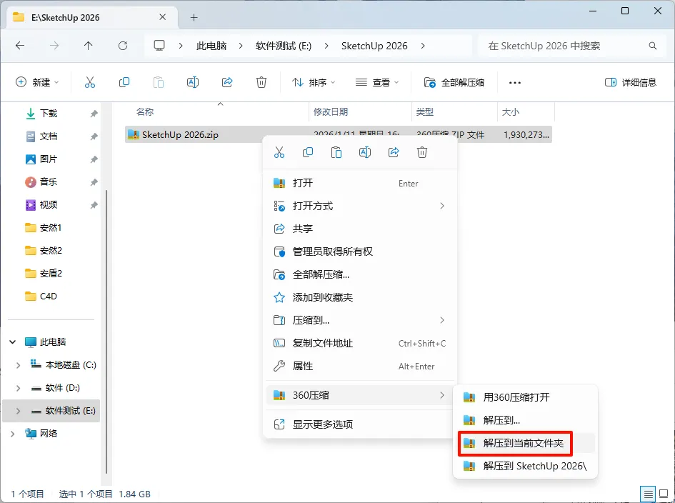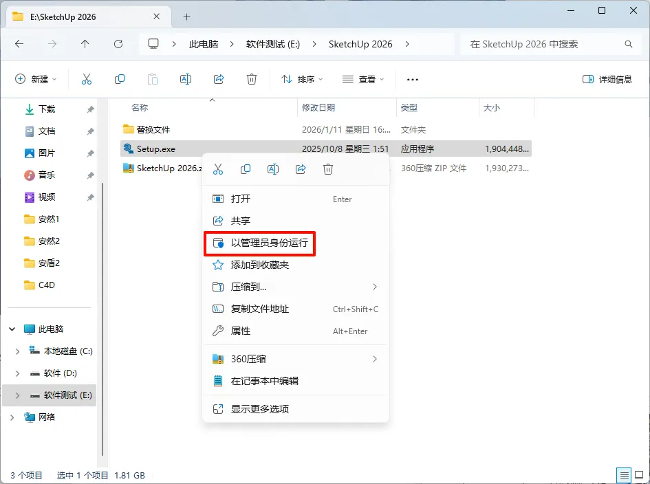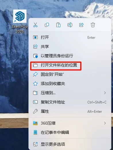 9.右键桌面【SketchUp 2026】图标,选择【打开文件所在位置】