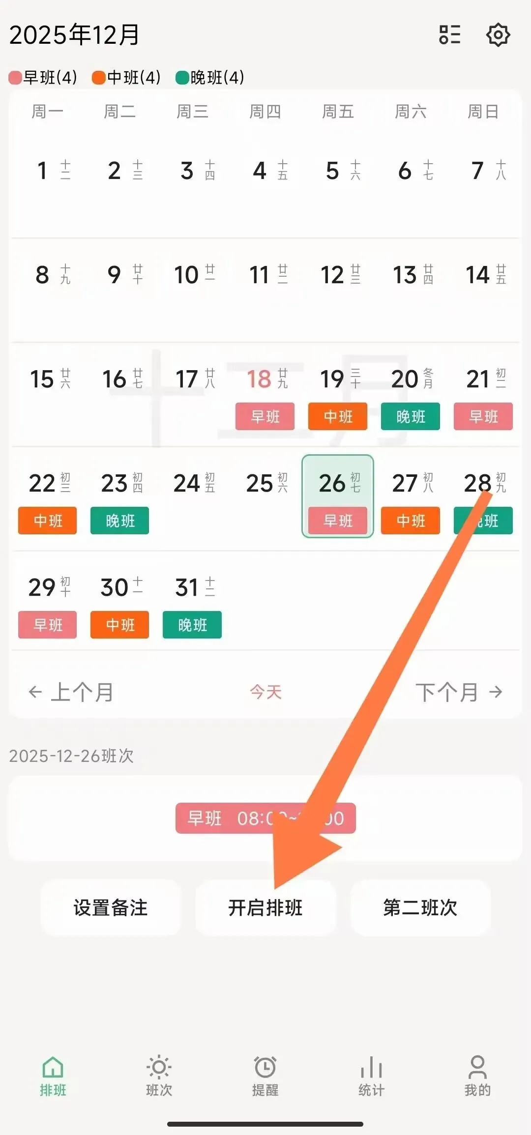 这款软件目前保持着完全免费的纯净状态,它的操作逻辑正如其名——极简。你只需要先自定义好自己的班次,比如“早班 08:00-16:00”、“夜班 00:00-08:00”等,设定好每个班次的起止时间。接下来,你只需在日历上轻轻点选,就能快速完成个人的排班布局。