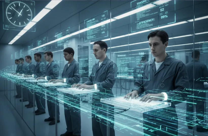 1936年的电影《摩登时代》中,卓别林在飞速运转的传送带前拧螺丝,动作从熟练到机械,最终身体仿佛不再属于自己。这是一个关于工业时代人被工具异化的经典隐喻。近一个世纪后,传送带换了形态,AI 成了新的齿轮。办公室里的工程师们发现自己正站在一条看不见的流水线前,不仅要使用工具,还要向系统证明自己用得足够多、足够好。一场名为 AI 效率革命的浪潮席卷科技行业,但在现实执行层面正异化为一场表演运动。一些技术团队开始量化 AI 的使用,将 Token 消耗量、AI 生成代码比例纳入排名。工具不再仅仅是工具,它开始反过来定义使用它的人。01刷 Token 成了心照不宣的表演春节过后,某头部互联网公司一位算法工程师感受到了内部急剧升温的 AI 氛围。内网铺天盖地都是关于如何使用 AI 的帖子,这些帖子本身甚至也是 AI 生成的。很快氛围从鼓励变成了压力,部门开始统计团队与个人的 AI 使用情况,核心指标有两个:Token 用量,以及提交代码中 AI 生成的比例。这些数据来自公司统一封装的内部 AI 工具。所有员工必须通过公司提供的入口调用模型,确保每一次交互都被记录在案。虽然没有设定硬性的奖惩,但排名是真实存在的。这位工程师说,排名靠后领导会被问责,压力最终还是会传导到个人。然而这种强制性的量化考核并未直接带来效率提升,反而扭曲了工作流程。算法团队习惯在配备高端显卡的远程服务器上开发,系统通常是 Linux。但公司最初的统计工具只适配了 Mac 和 Windows 本地环境。这是工程实践与管理工具脱节的典型案例。为了避免数据挂零,不让领导在周会上难堪,一种荒诞的工作模式诞生了。这位工程师坦言,现在先在本地用 AI 写代码确保行为能被统计到,再把代码复制到服务器上运行,这其实很影响效率。当工具的使用被赋予了绩效意义,表演便不可避免。为了刷高数据,他开始刻意进行一些无效交互。一个两秒钟就能手动完成的代码复制粘贴,他会故意询问大模型然后等待近一分钟,只为增加一点 Token 消耗。为了证明 AI 能节省时间,他不得不浪费更多时间去表演 AI 如何节省时间。这背后暴露了一个深刻的矛盾。在传统的软件工程价值体系中,衡量工程师能力的标准是代码质量、系统设计和解决复杂问题的能力。但在新的指标体系下,这些核心能力被一个简单粗暴的代理指标所替代:你消耗了多少 Token。刷 Token 不难,难的是很多工作明明不需要 AI,现在却要为了用而用另一位大厂的资深员工也发现了同样的趋势。Token 消耗量正成为判断员工是否积极拥抱 AI 的潜规则,甚至可能与未来的绩效和晋升挂钩。她分享了用公司新推出的智能体做 PPT 和数据报告的经历。界面是好看了点,但为了生成想要的分析结果,需要跟 AI 反复交互,远不如自己做 Excel 快。更让她困扰的是生成结果的不确定性,同样的 prompt 每次跑出来的结果都可能不一样,修改也很麻烦,只能一次次重跑,跟抽盲盒似的。在这场自上而下的 AI 强制运动中,一线员工们陷入了进退两难的困境。02看不见的传送带为什么管理者会选择如此简单甚至有些粗暴的量化方式?这并非全然是管理层的短视,更像是一种集体性的焦虑。当一项颠覆性技术出现时,最焦虑的往往不是执行者而是决策者。他们迫切需要找到一种方法来衡量这项新技术带来的影响,以及组织在变革中的位置。如果不能有效衡量,就无法进行有效管理。这几乎是现代企业管理的公理。AI 带来的效率提升本质上是过程的优化,但其最终产出的结果,无论是代码质量还是产品功能,很难在短期内与 AI 使用率直接挂钩。一个经验丰富的工程师手动写的几十行关键代码,其价值可能远超 AI 生成的上千行模板代码。在这种情况下管理者退而求其次,选择衡量那个最容易被观察和统计的变量:AI 工具的使用行为本身。Token 消耗量、API 调用次数、生成代码行数,这些数据清晰具体无可辩驳,自然成了构建新考核体系的基石。这种管理思维在技术圈被称为工具理性的极致体现,它专注于手段的优化而可能忽略最终目标。建立评估指标体系、确定权重,这些经典的量化管理方法被直接移植到了对 AI 使用的评估中。于是,一条看不见的传送带被建立起来,由公司内部的监控系统、数据看板和排名报表构成。员工的每一次 AI 交互都像一个被计数的零件,汇入庞大的数据洪流,最终在管理者的屏幕上呈现为一条波动的曲线。这条曲线成了组织 AI 转型成功与否的晴雨表,也成了悬在每个团队头上的达摩克利斯之剑。03人才管道正在被重塑这场量化风暴影响的不仅是现有员工的日常工作,它正在向上游蔓延,重塑整个人才的选、用、育、留管道。变化的信号首先出现在招聘环节。过去算法与工程岗位的面试核心是数据结构和算法白板题,候选人需要大量刷题。但现在一些公司开始引入新的考察维度:利用 AI 解决问题的能力。以蚂蚁集团为例,部分岗位的招聘已经引入了 AI Coding 环节。面试官不再仅仅考察候选人能否独立写出代码,而是观察他们如何与 AI 协作共同完成一项复杂的编程任务。一位蚂蚁的算法工程师认为这种考察很有意义,工作中已经找不到不用 AI 写代码的人了,相比会不会死记硬背地做题,能调用工具解决现实问题更符合实际需要。他甚至鼓励候选人在面试中使用任何工具,只要能解决问题。这种转变是深刻的。对工程师