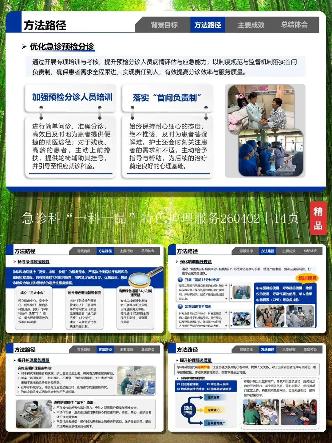 尊敬的各位领导、同仁们:大家好!今天我演讲的主题是急时有方,救在身边 —— 急诊科 “一科一品” 特色护理服务。