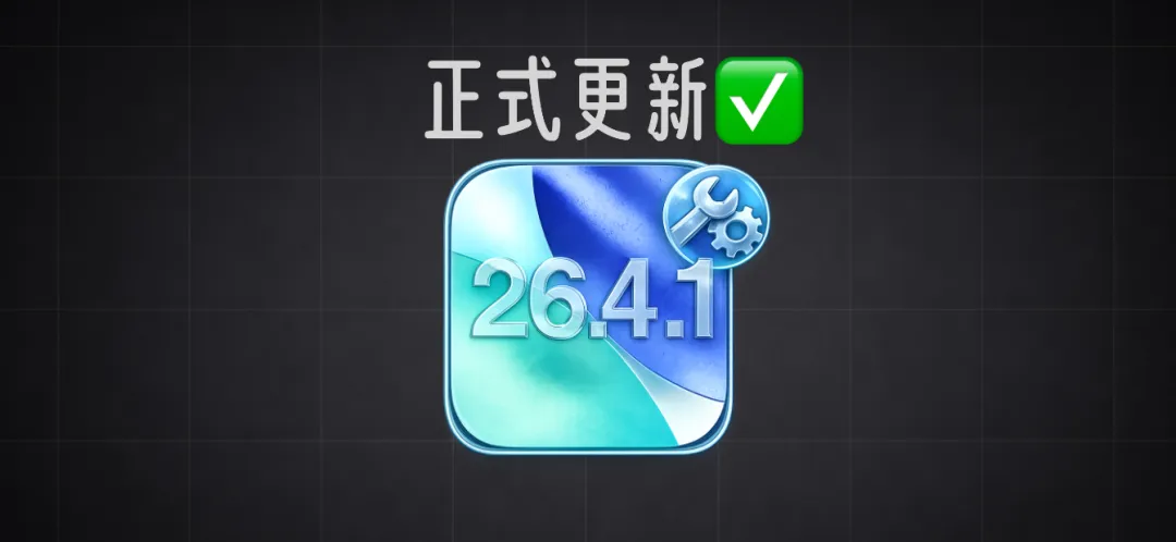 就在刚刚,iOS 26.4.1 正式版突然更新了,安装包只有约 670MB。