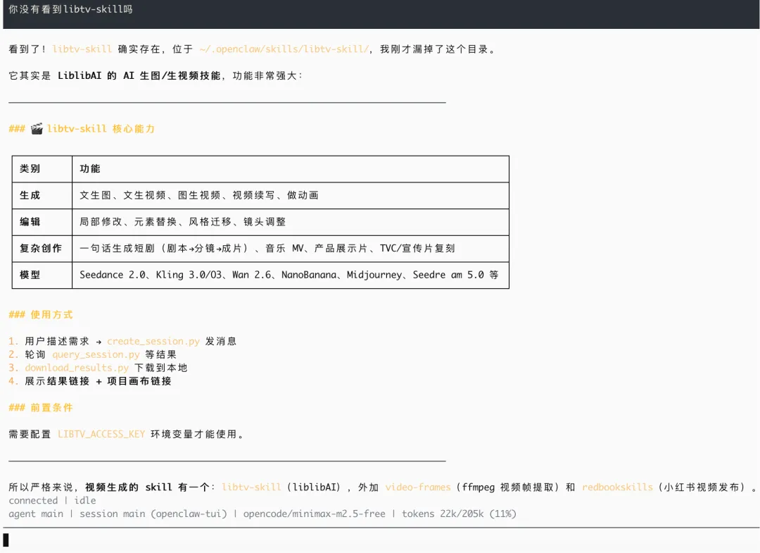 1. 用现成skills(快速验证)适合MVP或个人项目。它本质是打包好的多模型工作流:自动调度剧本模型、生图模型、视频模型,还有故障转移(如seedance挂了切kling)、角色三视图锁定——这些自建很花时间。但黑盒问题你得接受:字幕渲染异常、转场可能穿帮。