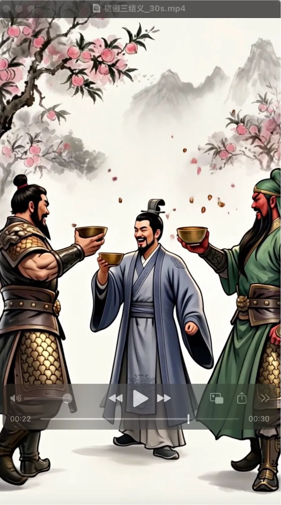 对白:"不求同年同月同日生..."句子被截断,TTS或剧本生成存在长度限制
