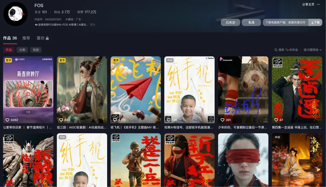 创作这部AI短片的,是抖音创作者@FOS和@WAI-你听,他们分别是WAI工作室创始人杨选和导演李婷。