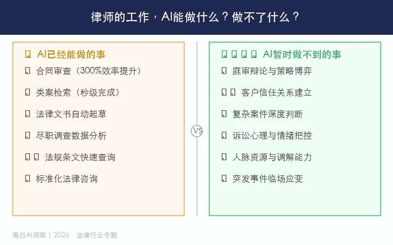 关键问题不是"AI能不能取代律师",而是"律师怎么用AI才不会翻车"。