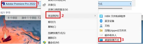 8.选中 Adobe Premiere ...文件点击鼠标右键,选择发送到,点击桌面快捷方式。
