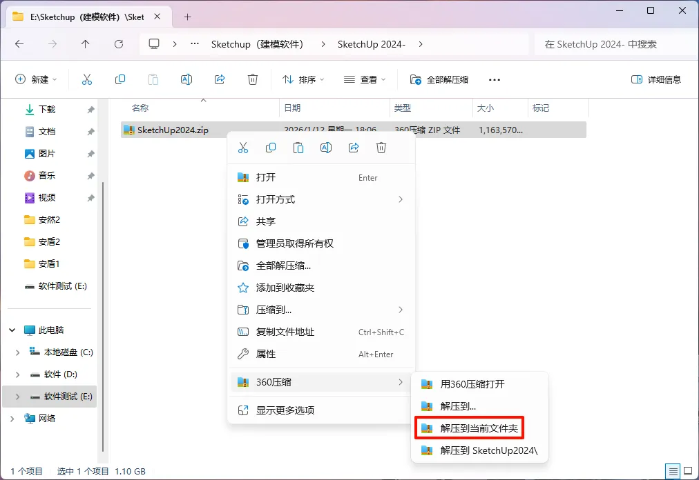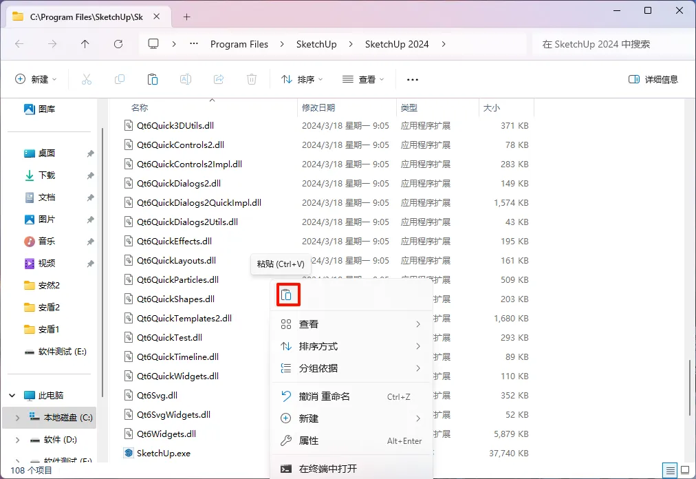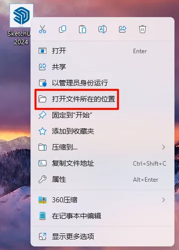 8.右键桌面【SketchUp 2024】图标,选择【打开文件所在位置】