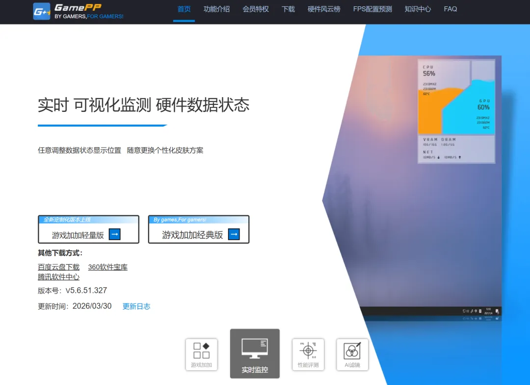 你一看名字就知道它是干嘛的,肯定是与游戏有关对的它是一个专业的游戏工具它的功能也是非常的全面使用,它可以给各种游戏加速,还可以做视频录制还可以实时监测你的硬件信息,还能在桌面上实时显示占用信息,风扇转速,让你更加清晰的知道什么软件在占用电脑资源而且根据不同的情况,制定不同的优化方案目前只有Win 版,后续会有Android 和iOS 版