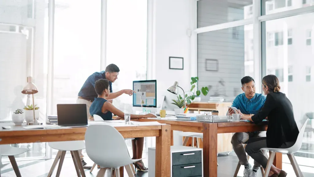 at侧重“内涵维系、功能状态”,at the office指“处于办公地点范围内”,偏重与“在上班、在办公场所”的功能关联,不是最不耗脑细胞的“室内位置”的空间关系。比如I’m at the office now,仅说明身处办公地点,可能在室内、走廊甚至门口,关键是“与办公场所的功能关联”。
