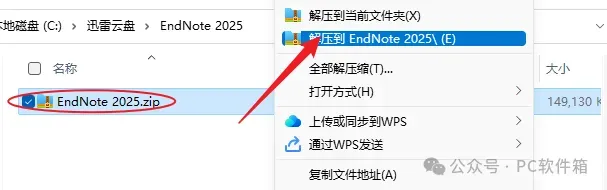 1.鼠标右击下载的【EndNote2025】压缩包,选择解压到【EndNote 2025】。