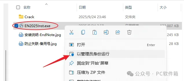 3.鼠标右击【EN2025Inst.exe】选择【以管理员身份运行】。