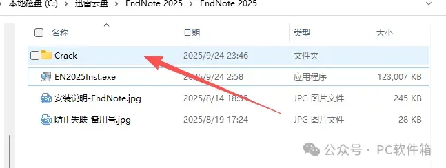 14.打开安装包解压后的【EndNote 2025】文件夹,①双击打开【Crack】文件夹。
