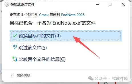17.点击“替换目标中的文件“(若提示需要管理员权限,勾选“为所有...”,点击“继续”)。