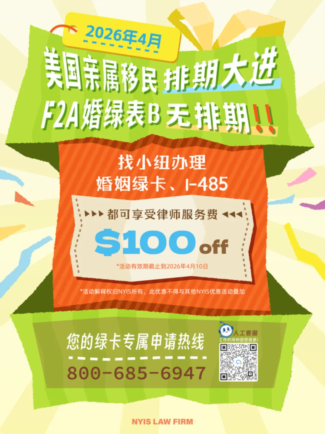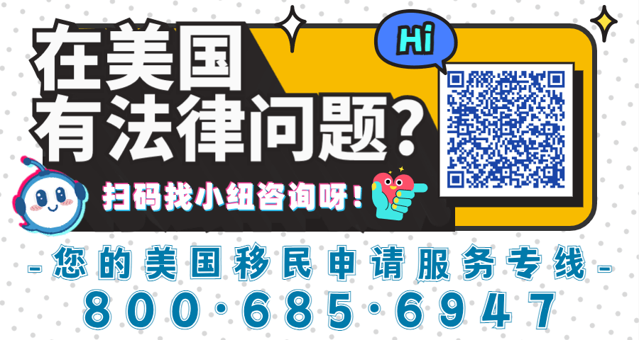 如果您对美国法律有任何问题,或者需要一支优秀的法律团队为您搞定美国各类移民申请,欢迎随时拨打小纽的热线电话800-685-6947免费咨询,我们将竭诚为您提供热情服务!
